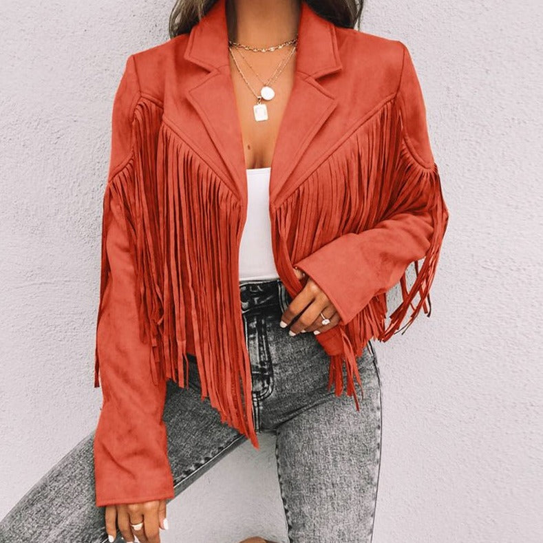 - Estilo: jaqueta com babado terracota